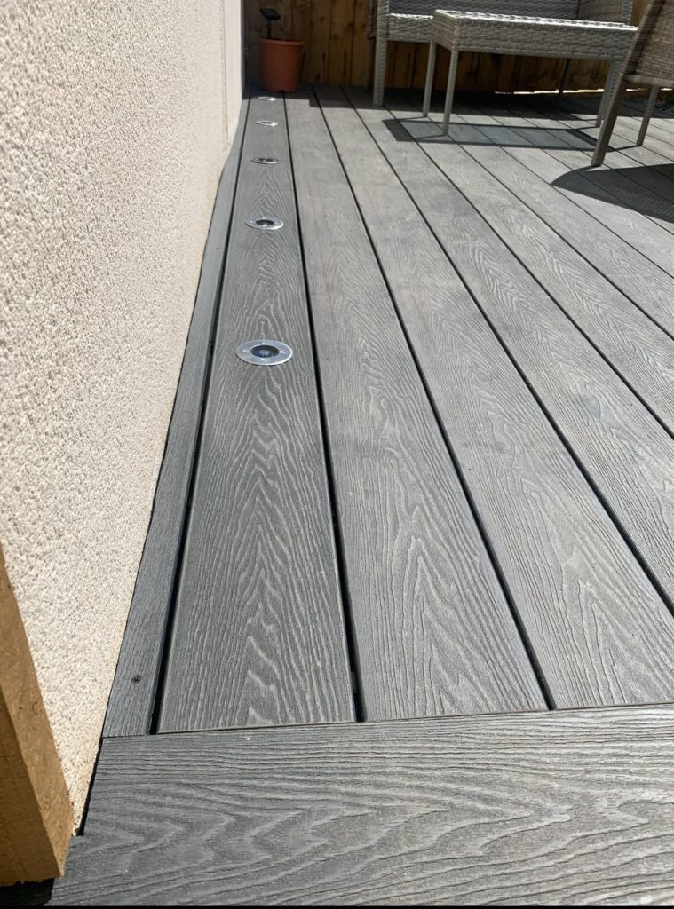 New decking in Falmouth built and installed with gorgeous up lighting.